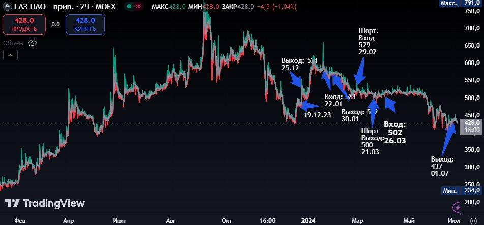 Газ ПАО с 433 поднялся до 439, есть небольшая динамика