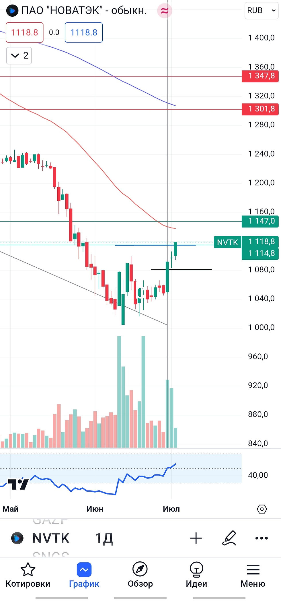 Добрый день, добавил сегодня Новатэк в портфель по 1134. Есть положительный фундаментал, подкрепленный технической картиной