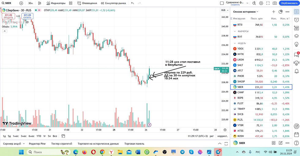 Взял Сбер на 30-ти минутках, по 229 руб. 10:34