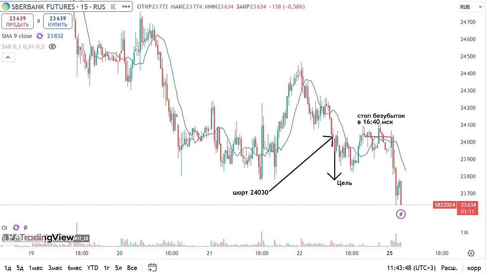 Всем добрый день. Продолжаю пробовать работать от шорта на фьючерсе Сбера. Индикатор дал сигнал.