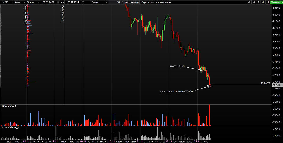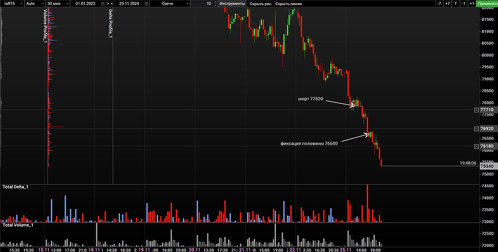 Фиксация половины шорта в РИ по 76680, стоп на вторую половину за максимум